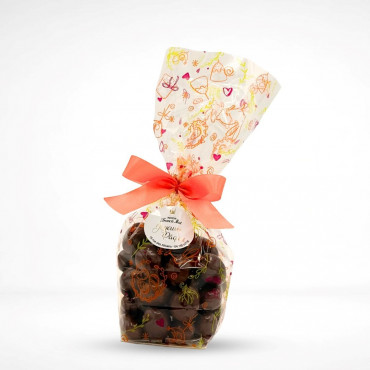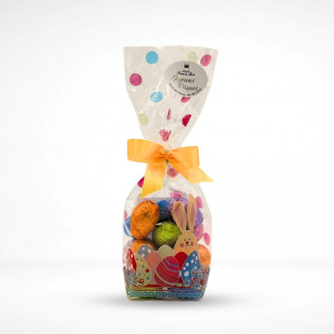Sachet d'oeufs composés de délicieuses amandes grillées enrobées du chocolat noir Gianduja et de chocolat au lait gourmand, à consommer sans modération pendant les fêtes de Pâques, ils raviront petits et grands. Photos non contractuelles