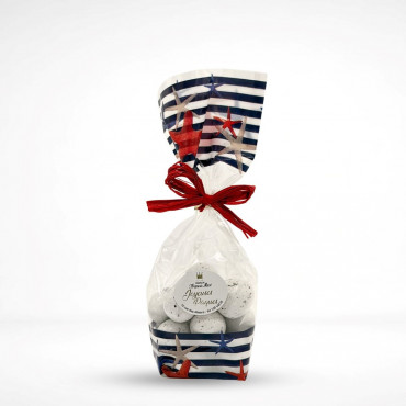 Sachet de bons oeufs de mouettes tout droit sorti du nid, avec leur enrobage chocolat croquant et leur intérieur fourré à la ganache caramel à la fleur de sel, ils seront faire craquer petits et grands pendant les fêtes de Pâques.
