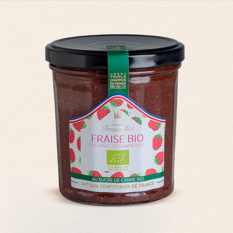 Chaque année au printemps, les fraises, emblématiques fruit rouge, font leur retour, et ce pour notre plus grand plaisir ! Elles émoustillent nos papilles… et font le bonheur des petits et grands gourmands. Cette confiture est préparée avec les meilleures fraises minutieusement sélectionnées, provenant d’une agriculture biologique.