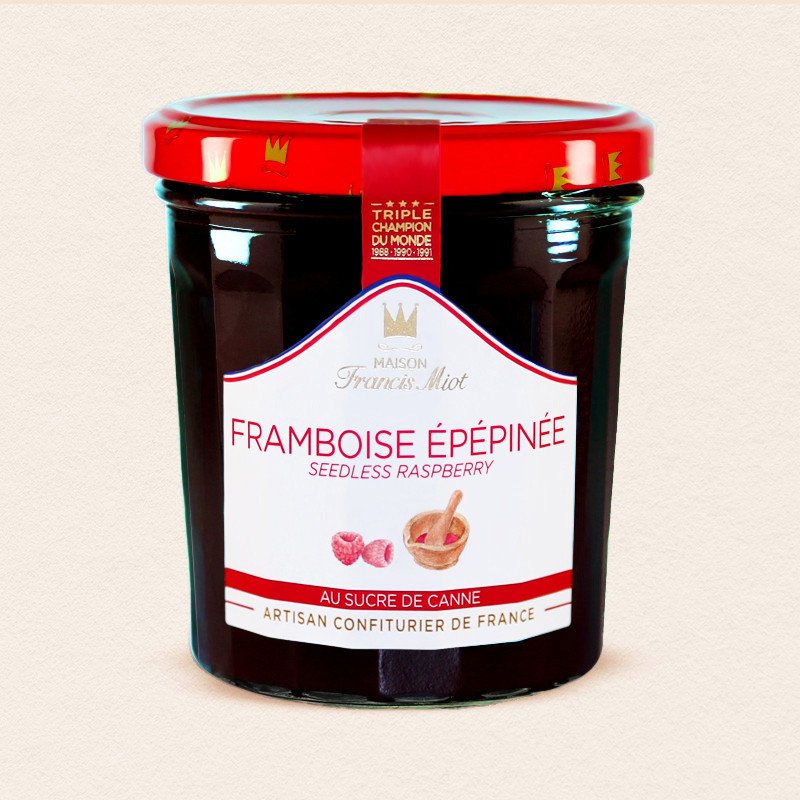 Notre boutique de vente en ligne a le plaisir de vous faire découvrir cette confiture artisanale Framboise épépinée au sucre de canne Framboise épépinée disponible en pot de 340g.