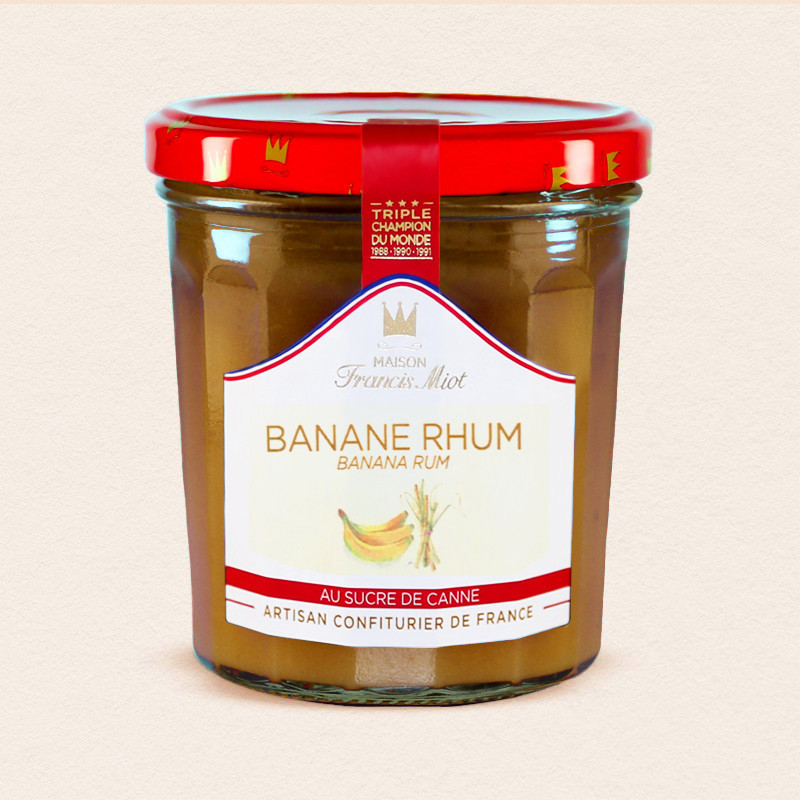 Notre boutique de vente en ligne a le plaisir de vous faire découvrir cette confiture artisanale Banane Rhum au sucre de canne disponible en pot de 340g et 100g.