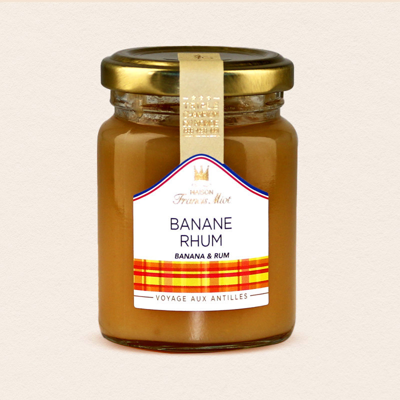 Notre boutique de vente en ligne a le plaisir de vous faire découvrir cette confiture artisanale Banane Rhum au sucre de canne disponible en pot de 340g et 100g.