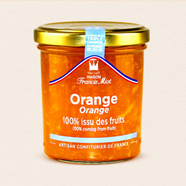 La confiture d'Orange 100% issue des fruits, c’est tout le fruit, rien que le fruit ! Cette confiture d'agrume aux saveurs acidulées est préparée avec des oranges cueillies à maturité et de l’extrait de jus de fruits exaltant le goût naturel et originel des fruits. Ni ajout d’arômes, additifs, colorants ou encore conservateurs : du gourmand à l’état pur ! Vous les apprécierez sur des tartines, avec des yaourts, glaces et pâtisseries.