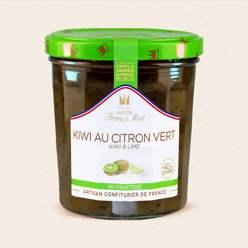 Si vous aimez les agrumes, vous adorerez cette préparation de kiwis, d'abord macérée dans le jus de citron puis doucement mijotée. À déguster sur des tartines de pain ou de brioche, ou à utiliser comme condiment pour accompagner un plateau de fromages… Parmi les fruits les moins caloriques et les plus chargés en vitamines (A,B et C), le kiwi cuisiné ainsi au fructose se révèlera être un pur plaisir ! Notre boutique de vente en ligne a le plaisir de vous faire découvrir cette confiture artisanale de kiwi au citron vert au fructose disponible en pot de 320g.