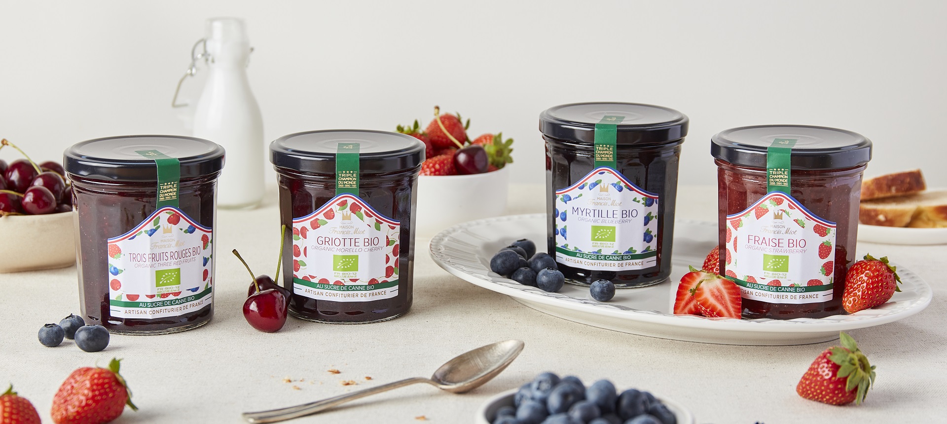 Tout commence en 1985 quand Francis Miot, confiturier du Sud-Ouest de la France, lance ses premières confitures artisanales et crée la société qui porte son nom. La Maison Francis Miot fabrique et distribue aujourd'hui confitures, confiseries et chocolats artisanaux d'exception élaborés avec soin et passion par une équipe de 35 gourmands !