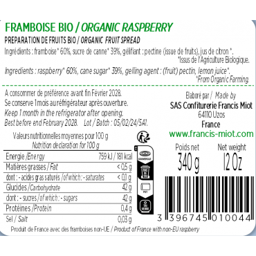 Notre boutique de vente en ligne a le plaisir de vous faire découvrir cette préparation de fruits artisanale de Framboise Bio disponible en pot de 340g.