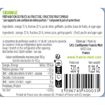 Notre boutique de vente en ligne a le plaisir de vous faire découvrir cette préparation de fruits artisanale Orange au fructose disponible en pot de 320g.
