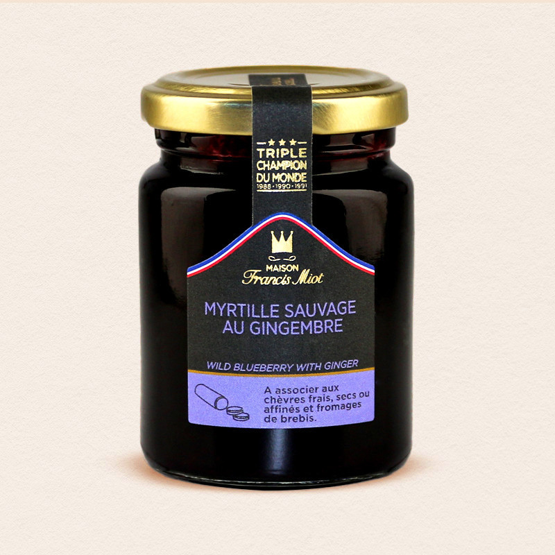 Cette préparation de fruits épicée et gourmande pour fromages est cuisinée à partir de myrtilles et de gingembre. Elle accompagnera merveilleusement bien vos fromages de chèvre, frais, secs ou affinées. Le fruit de nos montagnes mêlé aux saveurs orientales du gingembre s'allie avec discrétion et finesse aux saveurs caprines : tous les fromages de chèvre, aussi bien frais qu'affinés ou secs.