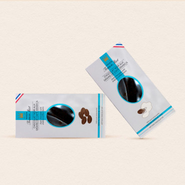 Les grains de café arabica en provenance du Guatemala dévoilent un goût fruité et intense et un croquant délicat qui s'associe parfaitement à notre chocolat noir 100% pur beurre de cacao.